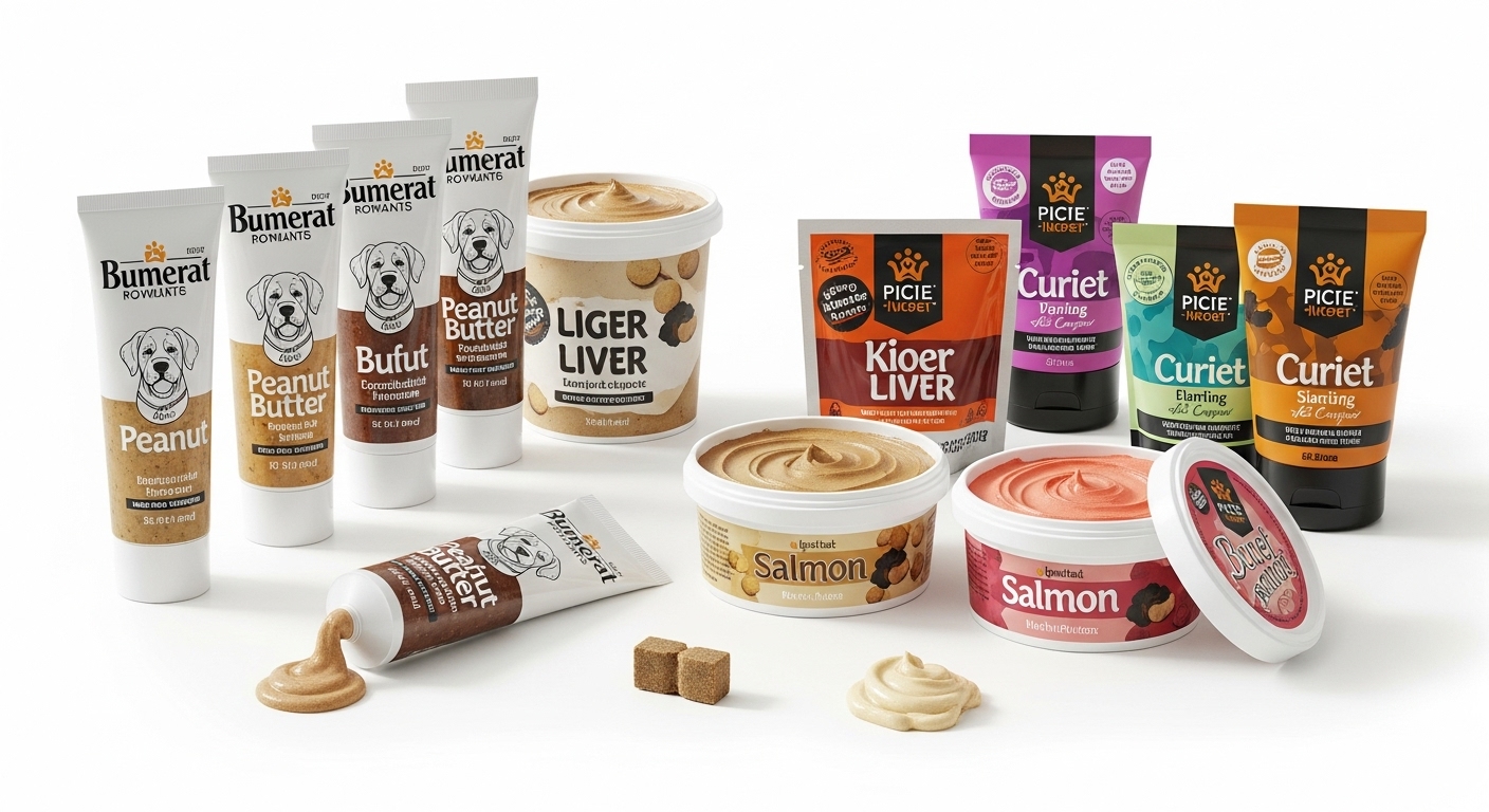 犬用おやつでは、ペースト状を維持するために用いられることがあります。